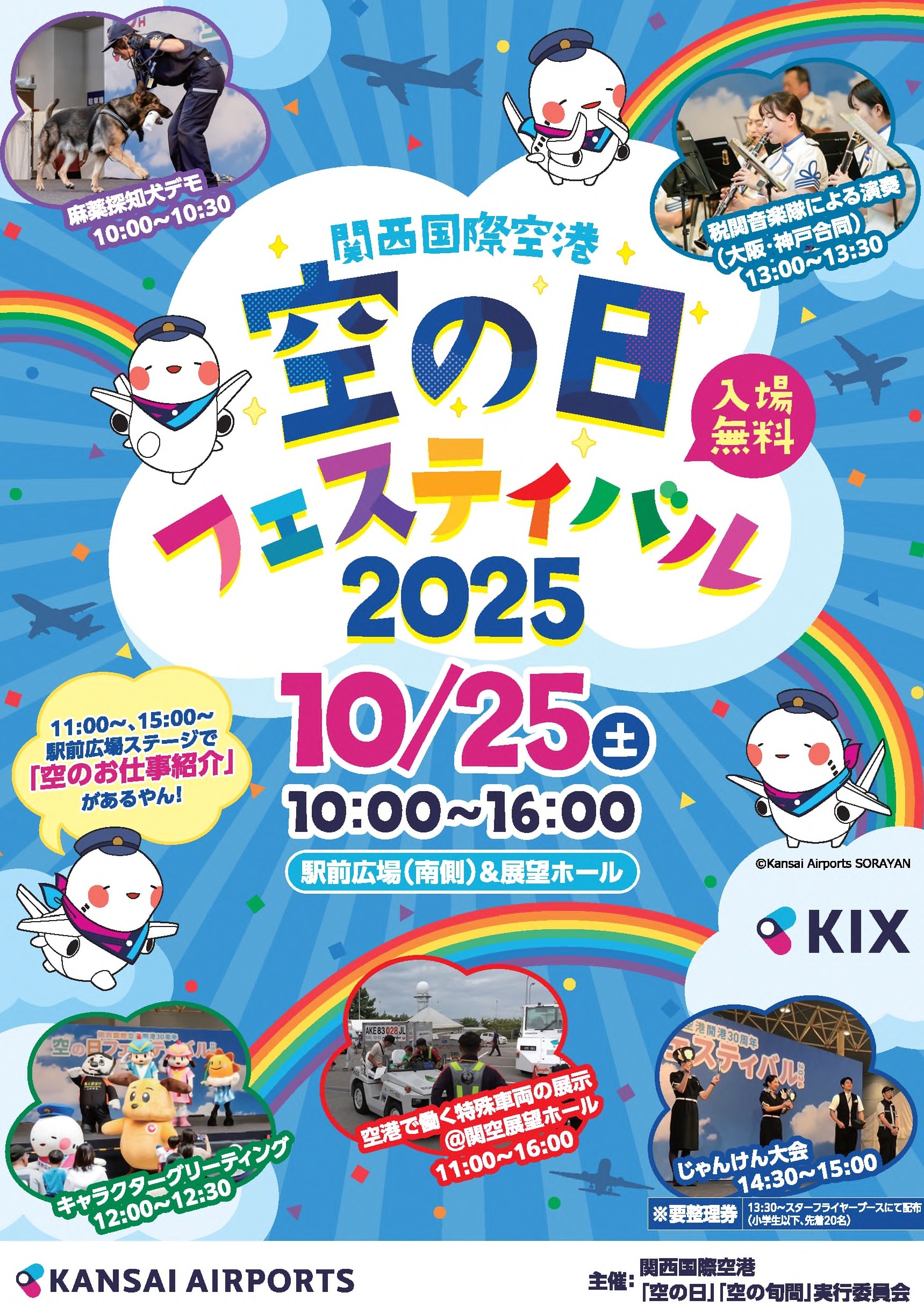 ・空のお仕事紹介、麻薬探知犬デモンストレーション、キャラクター